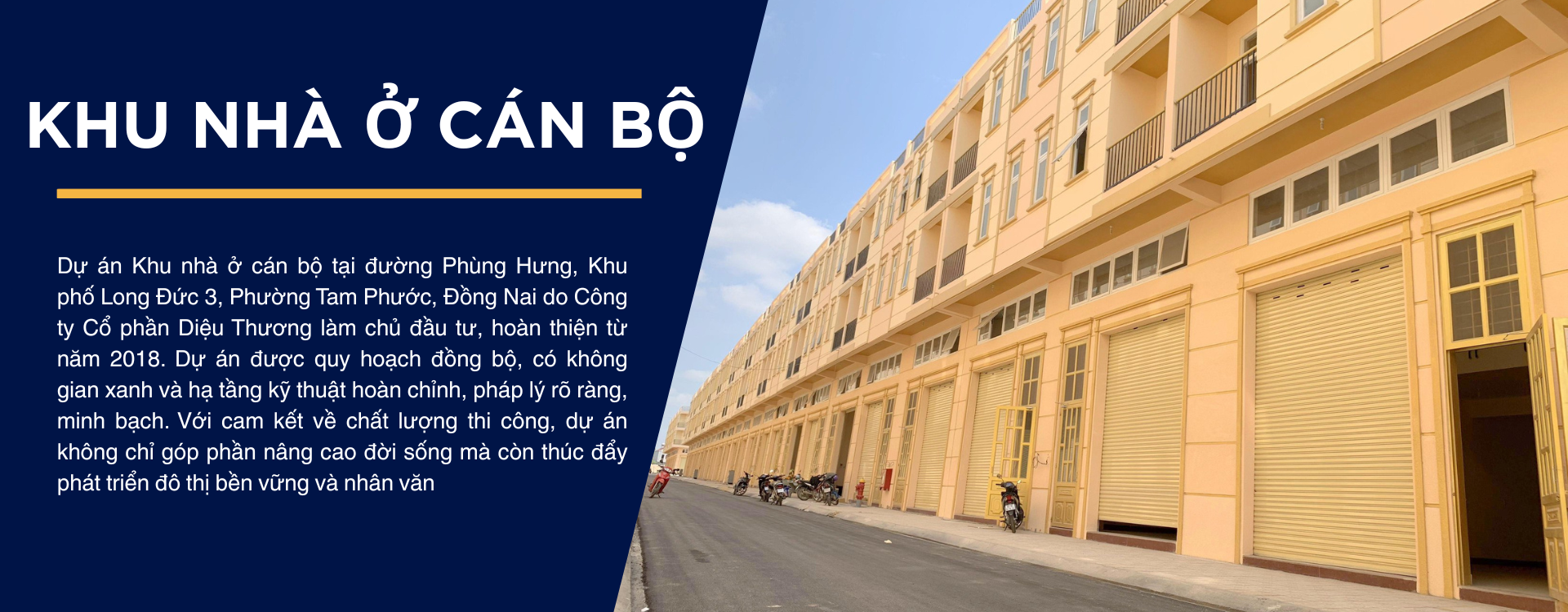 Bên cạnh đó, Diệu Thương còn đầu tư xây dựng một số dự án về bất động sản: dự án Khu nhà ở cán bộ tại Tam Phước, Biên Hòa, Đồng Nai; dự án Khu dân cư An Phước ở Long Thành, Đồng Nai